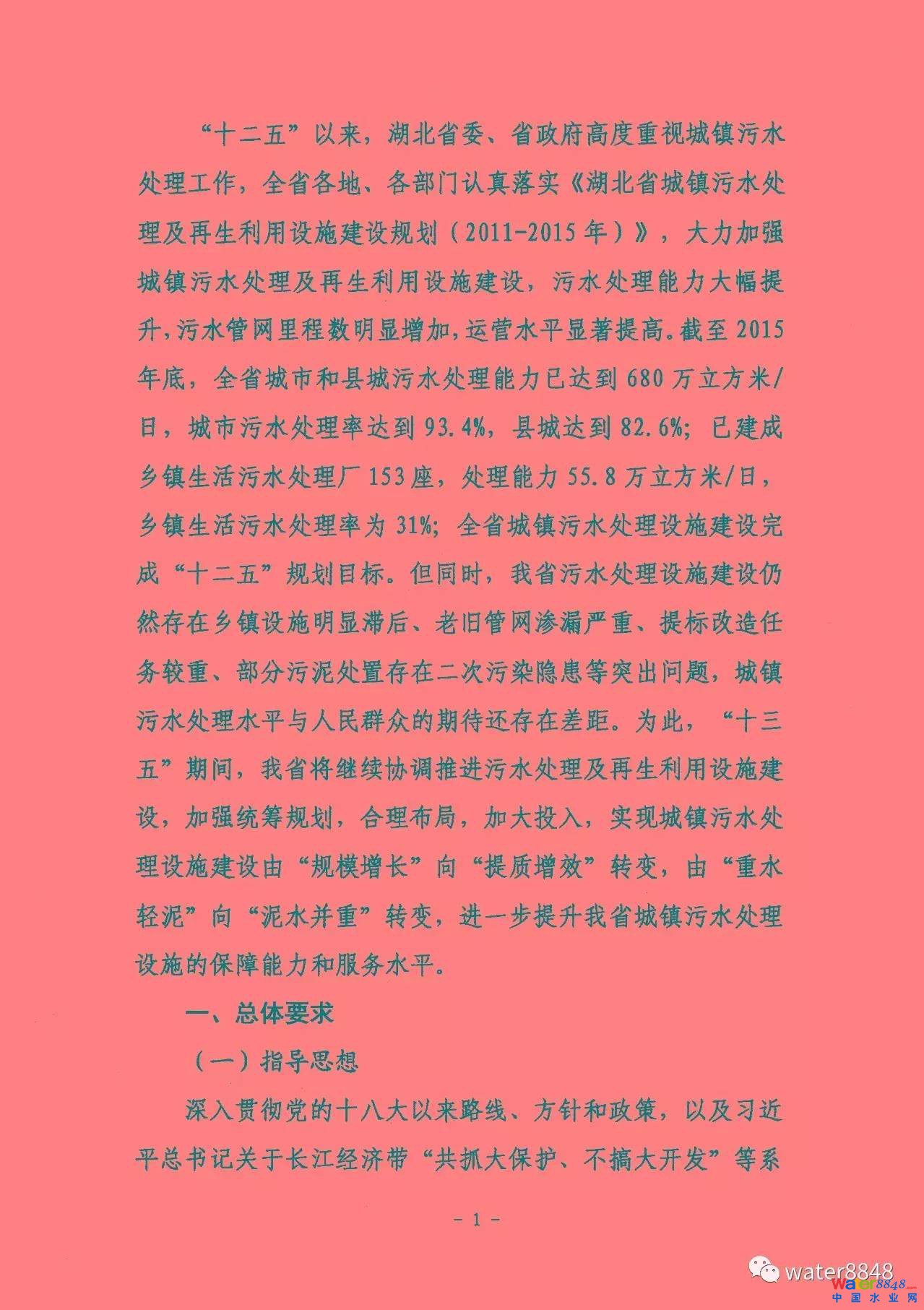全文:湖北省“十三五”城鎮(zhèn)污水處理及再生利用設(shè)施建設(shè)規(guī)劃 (發(fā)改環(huán)資〔2016〕2849號)