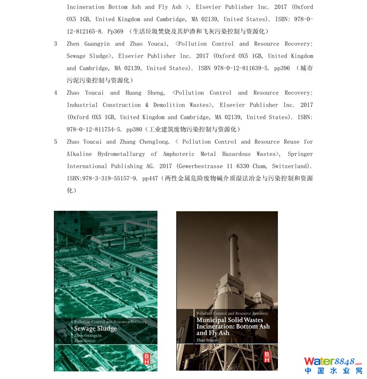 5 Zhao Youcai and Zhang Chenglong. < Pollution Control and Resource Reuse for Alkaline Hydrometallurgy of Amphoteric Metal Hazardous Wastes>, Springer International Publishing AG. 2017 (Gewerbestrasse 11 6330 Cham, Switzerland). ISBN:978-3-319-55157-9. pp447(兩性金屬危險(xiǎn)廢物堿介質(zhì)濕法冶金與污染控制和資源化)