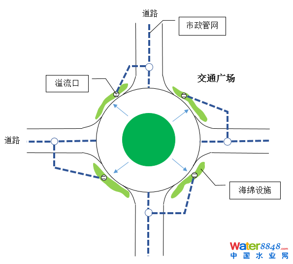 ④交通廣場的雨水調蓄設施均設置溢流管,超過設計標準的雨水溢流入市政管網(wǎng)。