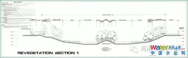 ▲第一階段的“圣地亞哥河道的治理工程”的河道剖面結(jié)構(gòu),恢復了河流的自然結(jié)構(gòu)。