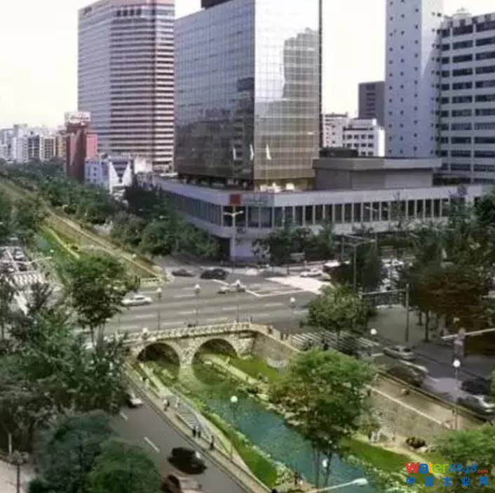清溪川是韓國首爾市中心的一條河流,全長10.84公里,總流域面積59.83平方公里。在二十世紀五六十年代,由于城市經(jīng)濟快速增長及規(guī)模急劇擴張,清溪川曾被混凝土路面覆蓋,成為城市主干道之下的暗渠,因工業(yè)和生活廢水排放其中,其水質(zhì)也變得十分惡劣。