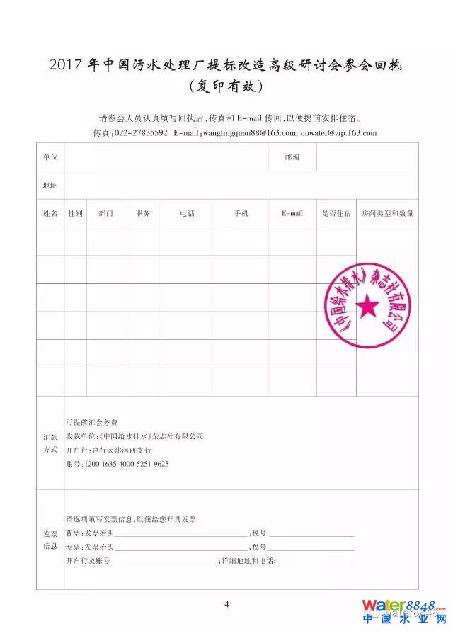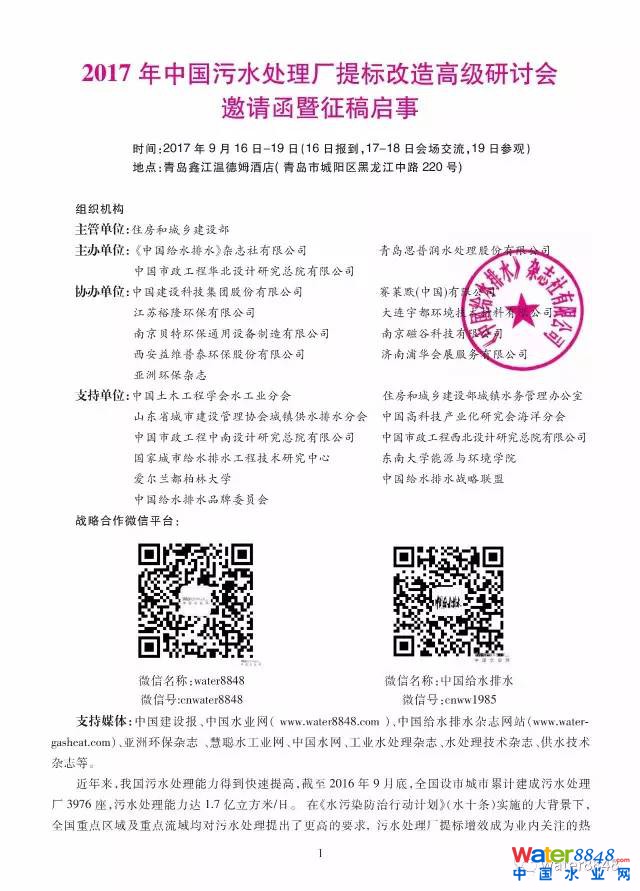 2017年中國污水處理廠提標改造高級研討會邀請函暨征稿啟事