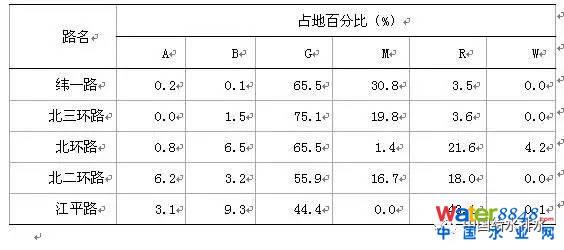 表1 主、次干路服務地塊分類統計表(部分)