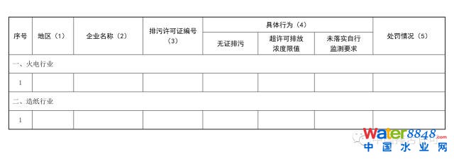 填表說(shuō)明:(1)具體到企業(yè)所在縣(區(qū));(2)企業(yè)注冊(cè)名稱全稱;(3)無(wú)證排污企業(yè)填無(wú);(4)勾選對(duì)應(yīng)的行為,可多選,無(wú)相應(yīng)行為的可不選;(5)簡(jiǎn)要說(shuō)明具體行為和采取的處罰情況。