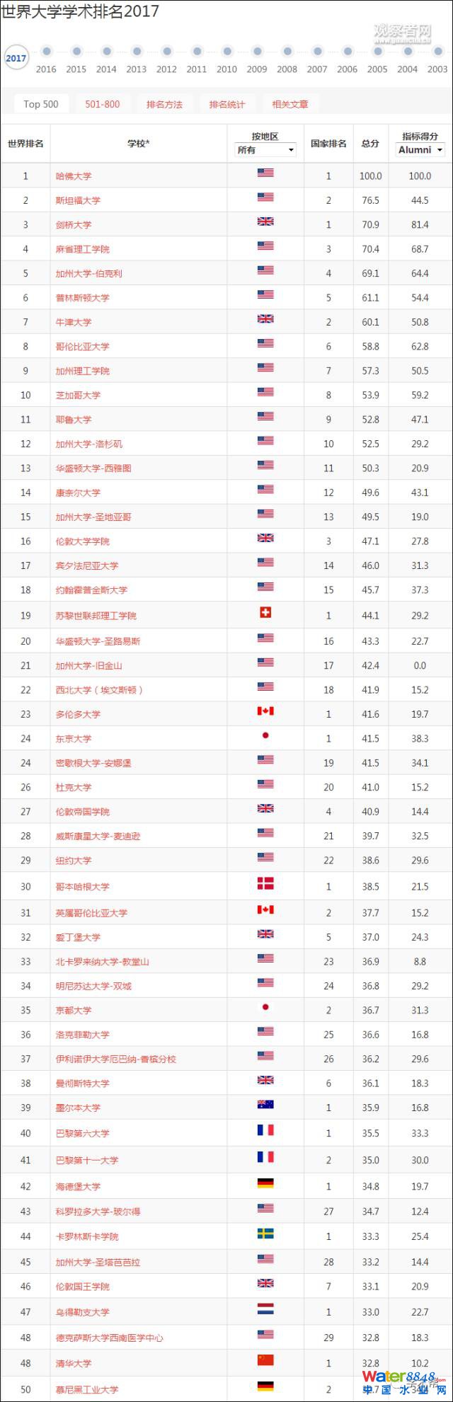 8月15日,全球四大高校排名系統(tǒng)之一世界大學學術排名(ARWU),發(fā)布了第15版也就是2017年榜單,各個國家和地區(qū)的500所研究型大學排出座次。