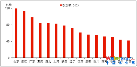 我國(guó)“十三五”城鎮(zhèn)污水處理能力規(guī)劃新增規(guī)模的投資額前列省市