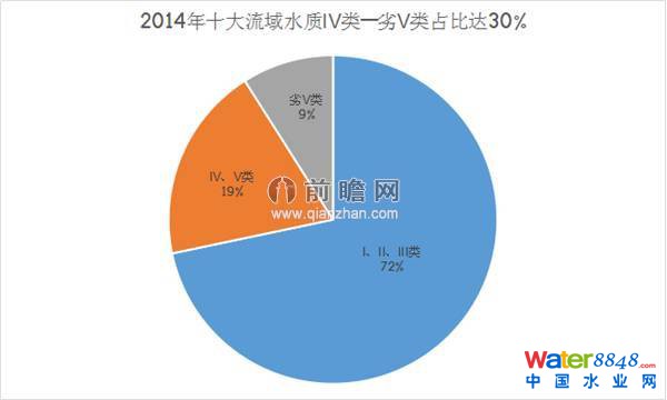 其三,我國(guó)水污染問(wèn)題嚴(yán)重,2014年十大流域水質(zhì)IV類(lèi)—劣V類(lèi)累計(jì)占比達(dá)30%,接近三分之一。