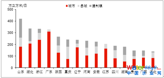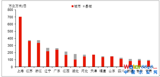 我國(guó)“十三五”城鎮(zhèn)污水處理能力規(guī)劃新增規(guī)模前列省市