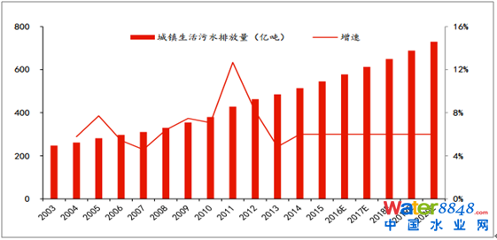 我們預(yù)測(cè)城鎮(zhèn)污水排放保持增長(zhǎng)