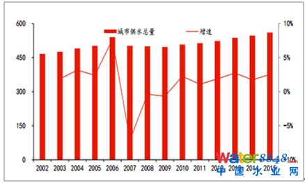 城市供水總量保持穩(wěn)定增長(zhǎng)(億立方米)