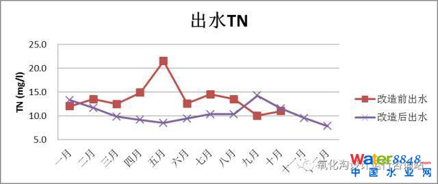 沒有投加碳源而實(shí)現(xiàn)了出水總氮達(dá)標(biāo),總氮出水指標(biāo)為10.4mg/l,低于15mg/l要求。