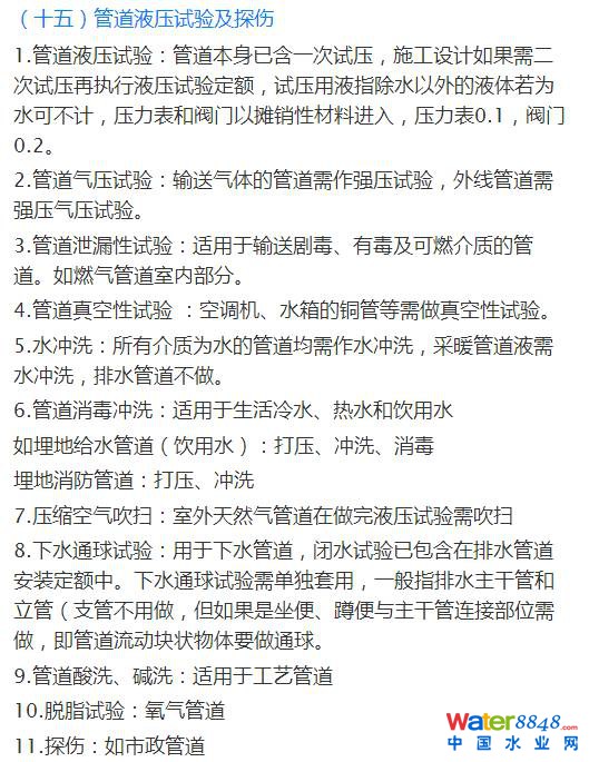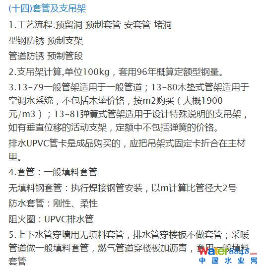12.有伸縮管道應加套管,采暖、熱水、冷凍、冷卻、凝結水穿墻、樓板應加套管,給水、消防、噴灑、排水不必要加。