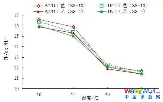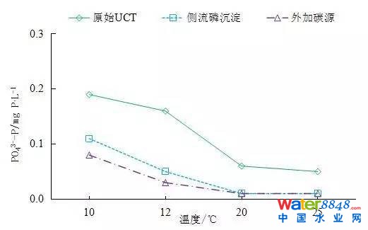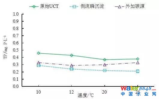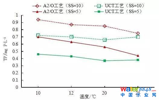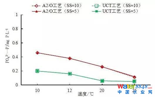 生物除磷效果越好,出水中溶解性PO43-就越低,而出水SS中因聚磷菌緣故使P含量高(5%~6%)才是制約出水TP達(dá)標(biāo)排放的關(guān)鍵。因此,UCT工藝加高效沉淀池或簡單砂濾即可將出水SS降至5 mg/L以下,可能并不需要MBR的助力。