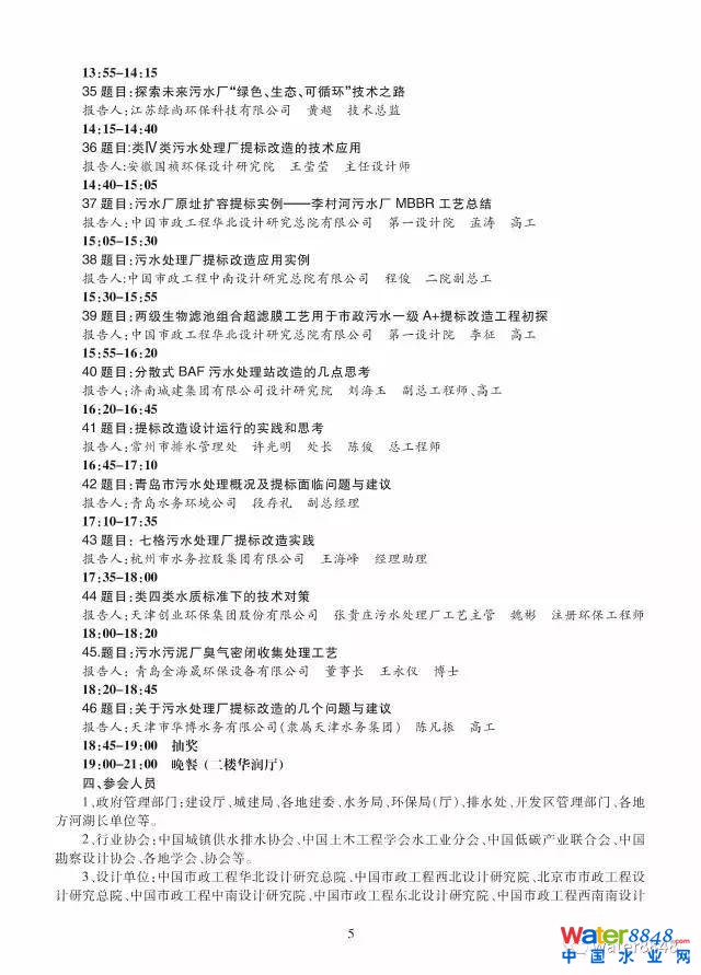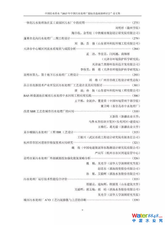 論文集目次(465頁內(nèi)文,47位專家報告):中國給水排水 2017年中國污水處理廠提標(biāo)改造高級研討會 論文集目次