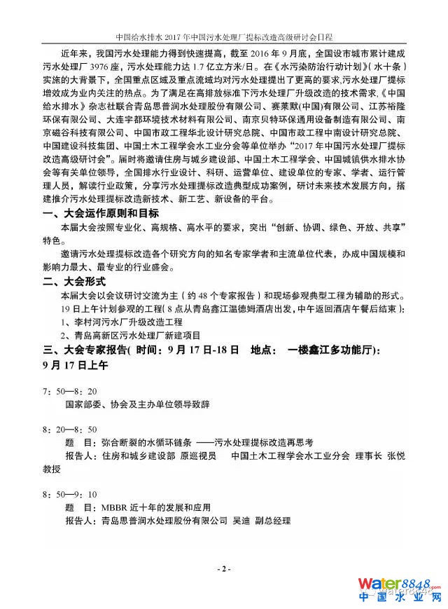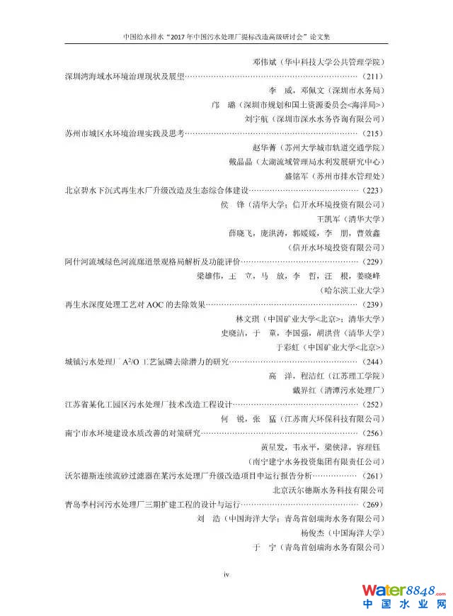465頁(yè)內(nèi)文,48位專(zhuān)家報(bào)告:中國(guó)給水排水 2017年中國(guó)污水處理廠(chǎng)提標(biāo)改造高級(jí)研討會(huì) 論文集目次