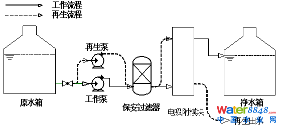 環(huán)境友好。電吸附的工作和再生過程,無需任何化學(xué)藥劑。與離子交換技術(shù)相比,減少了在濃酸、濃堿的運(yùn)輸、貯存和操作上的麻煩,而且不向外界排放酸堿中和液;與反滲透相比,無需加入還原劑、分散劑、阻垢劑等。所排放的濃水系來自于原水,系統(tǒng)本身不產(chǎn)生新的排放物,排放不超標(biāo),回收經(jīng)濟(jì)性好,從而避免了二次污染問題。