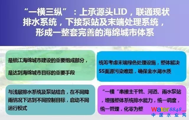 針對鎮(zhèn)江城市老城區(qū)雨污合流和CSO溢流問題、初期雨水污染問題和河道治理問題的現(xiàn)狀需求,加上海綿城市年徑流總量控制率、年徑流污染控制率和內(nèi)澇防治的三大目標(biāo)要求,源頭綠色LID充分建設(shè)仍然滿足不了水質(zhì)水量耦合目標(biāo),中心提出沿金山湖多功能大口徑管道系統(tǒng)方案,對現(xiàn)狀管網(wǎng)灰色系統(tǒng)進(jìn)行有效補(bǔ)充,完成區(qū)域海綿城市建設(shè)目標(biāo),建設(shè)科學(xué)合理完善的海綿城市工程體系和聯(lián)合運(yùn)行調(diào)度體系,實(shí)現(xiàn)海綿城市建設(shè)的系統(tǒng)集成創(chuàng)新。
