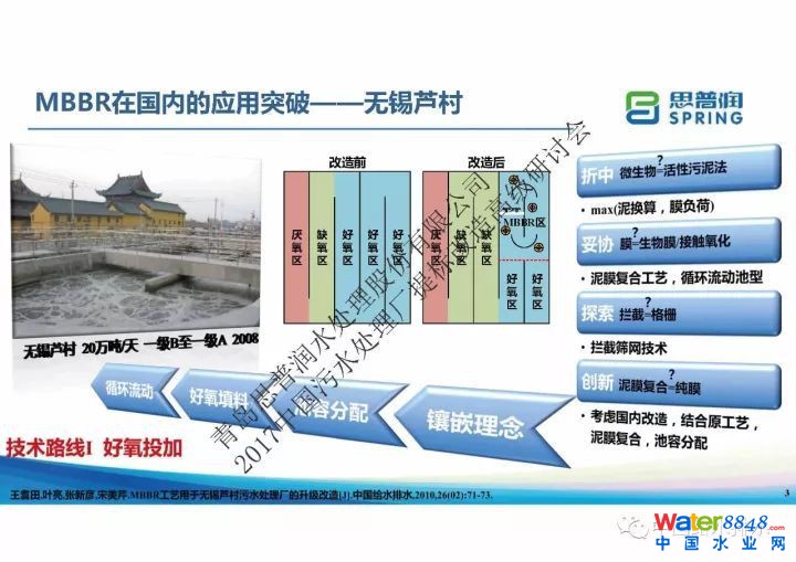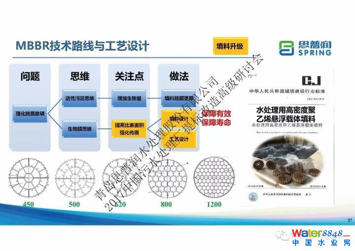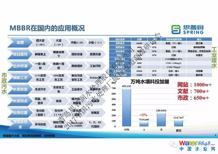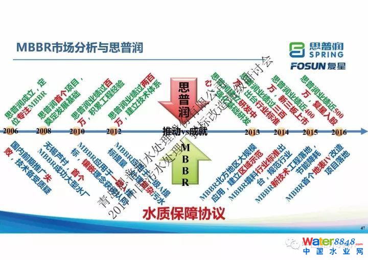 最后介紹一下我們公司,我們是2006年成立,注冊資金6900萬,新三板高新技術(shù)企業(yè)。專注MBBR的建設(shè)。工程業(yè)績現(xiàn)在是近500萬噸每天,思普潤從成立開始跟MBBR結(jié)下不解之緣,專注11年。我們很早時就采用水質(zhì)保障協(xié)議方式保證業(yè)主利益,就是說不達標(biāo)可以不給我們錢,甚至我們體量達到三百萬噸時,公司都因為我們的協(xié)議保證而在墊資建設(shè),這也是源于我們對自己工藝的信心。我們擁有完整的自主知識產(chǎn)權(quán),發(fā)明專利,獲取國家省市的眾多獎項。我們李村河獲得水協(xié)張杰院士的審評,參與國家865的專項課題技術(shù)發(fā)展。今天就介紹到這里,謝謝大家。