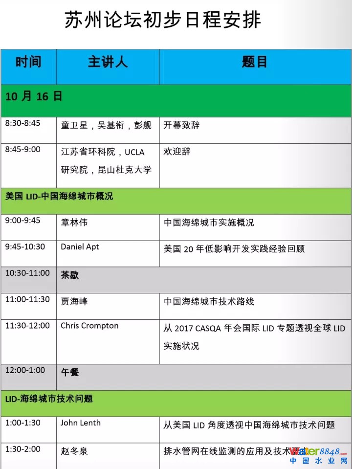 2017年洛杉磯環(huán)境論壇蘇州分論壇由南加州環(huán)保協(xié)會(SCCAEPA)和江蘇省環(huán)科院主辦,洛加大(蘇州)先進技術研究院和蘇州市清澤環(huán)境技術有限公司承辦,昆山杜克大學協(xié)辦,于10月16-17日在昆山杜克大學舉辦。2017年洛杉磯環(huán)境論壇蘇州分論壇專題為:海綿城市、智慧城市和流域管理。由二十多位國內和歐美低影響開發(fā)和海綿城市專家主講,代表了業(yè)界國際領先水平。論壇期間我們將會提供中文同聲傳譯服務。