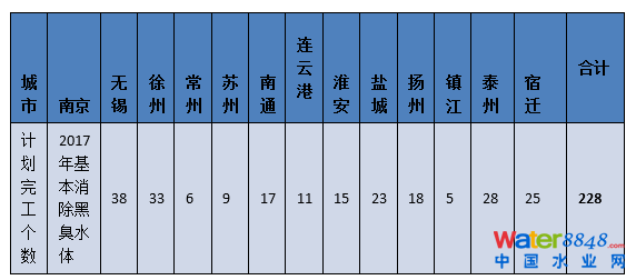 2. 蘇州、南通、連云港等市計(jì)劃2018年底基本消除建成區(qū)黑臭水體。
