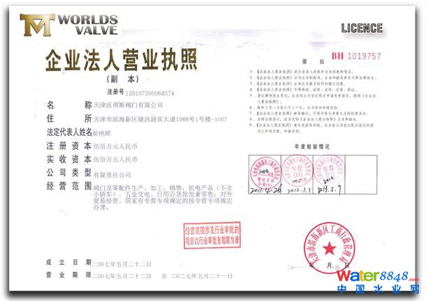 TIANJIN WORLDS VALVE LTD. is located at TIAN JIN BIN HAI where is only 3 kilometers away from Tianjin Xingang Port,TIANJIN WORLDS VALVE LTD. is a specialized manufacture enterprise that focuses producing, installing, sale and service. The main products include Center Line Butterfly Valve, Flanged Butterfly Valve, Metal Butterfly Valve, Check Valve, Gate Valve, Waterpower Control Valve, Microresistance Slow Close Check Valve, Multi-function Pump Control Valve and their series products. Moreover, we can produce control valve and pressure reducing valve that are different materials, pressures, specifications, actuation ways. Our products include more than 50 serials and 1200 species, and the annual production output is more than 8.000 metric tons. WORLDS valves have been selling well all over China and exporting to Europe, America and other countries and areas, which are used widely in water supply and drainage, electric power, petrol chemical industry, metallurgy and other trades. Our products are quite creative, good quality, cheap price and excellent credit, so customers trust our products.