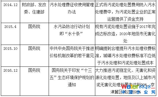 收費政策保障行業(yè)發(fā)展:2011年《國家環(huán)境保護“十二五”規(guī)劃》中首次提出收費標準逐步滿足污水處理設(shè)施穩(wěn)定運行和污泥無害化處置需求。2014年《污水處理費征收使用管理辦法》正式將污泥處理處置費用納入污水處理費中,一方面為污泥處置企業(yè)的正常運營提供了資金支持,另一方面污水污泥處理的結(jié)合也能夠從根源上改變我國將污泥視為固廢單獨處理的現(xiàn)狀,為污泥處理處置行業(yè)發(fā)展提供根本保障。