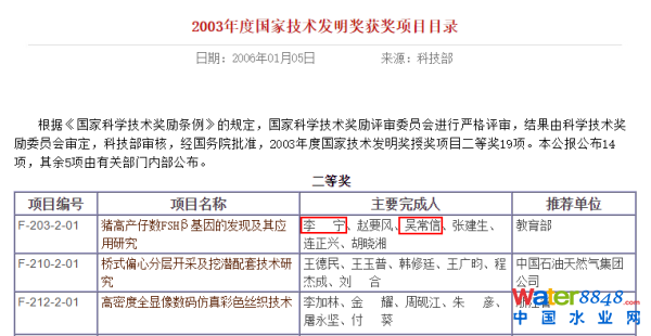 而且,在李寧之前獲獎(jiǎng)的豬產(chǎn)子率基因相關(guān)項(xiàng)目中,吳常信也是其中的完成人之一。