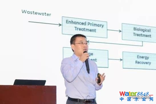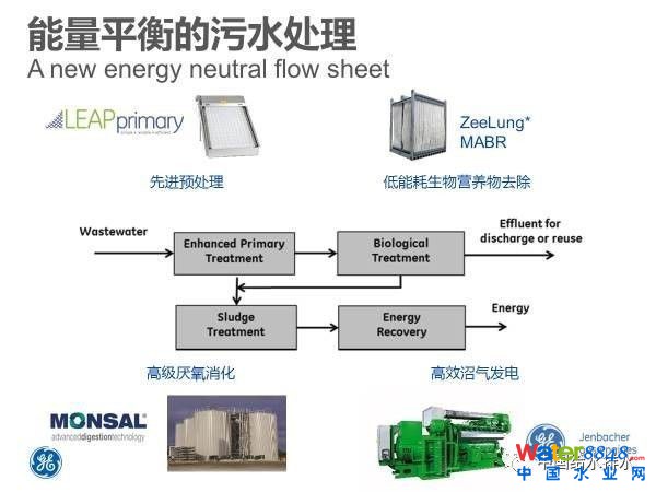 大家好,我今天下午介紹的主題是基于膜法的污水廠升級(jí)改造方案,主要跟大家分享兩個(gè)技術(shù):第一個(gè)是MABR技術(shù),第二個(gè)是MBR技術(shù)以及升級(jí)版的MACmbr技術(shù)。首先從能量平衡角度而言,污水處理廠可以看如何實(shí)現(xiàn)整體全廠能量平衡自給自足,這是典型能量平衡的污水處理廠四個(gè)單元,預(yù)處理采用LEAPprimary可代替?zhèn)鹘y(tǒng)的初沉池和超細(xì)格柵(1mm膜格柵),通過(guò)物化方式將有機(jī)物和懸浮物進(jìn)行一定去除,以減輕后續(xù)生化處理的負(fù)荷以及更有效地保護(hù)膜系統(tǒng)。關(guān)于生化處理有低能耗MBR技術(shù)和強(qiáng)化去除營(yíng)養(yǎng)物的MABR技術(shù)。污泥處置可采用Monsal高級(jí)厭氧消化技術(shù),不同于目前市場(chǎng)常見(jiàn)的熱水解的厭氧硝化技術(shù),我們的技術(shù)是生物酶水解的中溫厭氧硝化技術(shù)。最后一個(gè)單元就是高效沼氣發(fā)電,利用厭氧消化產(chǎn)生的甲烷發(fā)電實(shí)現(xiàn)熱電聯(lián)產(chǎn)和能量回收。
