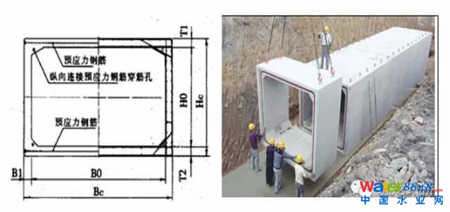 是一種較為先進(jìn)的施工方法,要求有較大規(guī)模的預(yù)制廠和大噸位的運(yùn)輸及起吊設(shè)備。特點是施工速度快,施工質(zhì)量易于控制,模具重復(fù)利用率高,管廊施工量大的情況下工程總造價相對比較低。