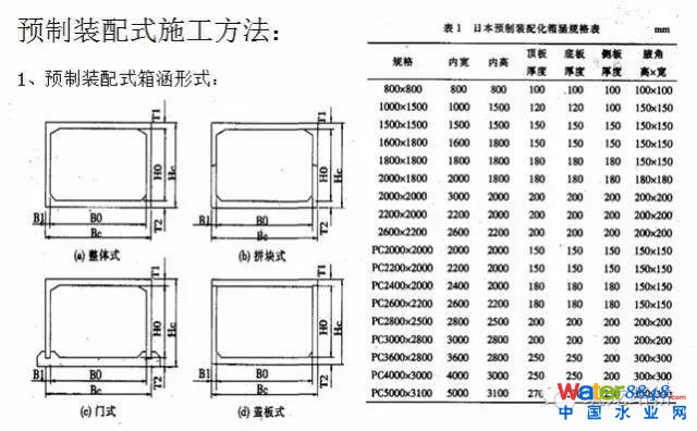2、預(yù)制裝配式箱涵種類:普通鋼筋砼箱涵、預(yù)應(yīng)力砼箱涵(內(nèi)寬超過2600mm的箱涵,可在頂、底板施加橫向預(yù)應(yīng)力,以便減薄頂、底板厚度)