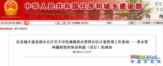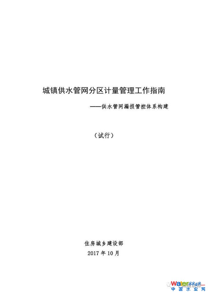 住建部要求各省級(jí)城鎮(zhèn)供水主管部門選擇本地區(qū)具有一定工作基礎(chǔ)的城市作為供水管網(wǎng)分區(qū)計(jì)量管理控制漏損省級(jí)試點(diǎn),加強(qiáng)業(yè)務(wù)指導(dǎo),并將試點(diǎn)城市名單于2017年10月30日前報(bào)該部。