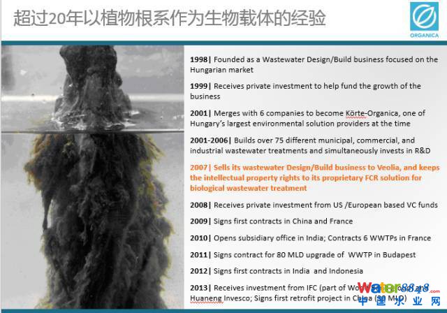 接下來是奧尼卡公司的發(fā)展歷程,從1998年建立,開始匈牙利國內(nèi)水處理業(yè)務(wù),發(fā)展到2007年成為匈牙利最大的水處理工程技術(shù)公司,并把部分建造的EPC公司銷售給法國威立雅,保留了FCR工藝技術(shù)的知識(shí)產(chǎn)權(quán),并授權(quán)威立雅在法國建造FCR污水處理廠,之后開始全球布局,2012年世界銀行對(duì)奧尼卡公司進(jìn)行了全面考核之后,成為奧尼卡公司最大的股東,這是2014年世界銀行發(fā)給水處理技術(shù)組織的一封推薦信。