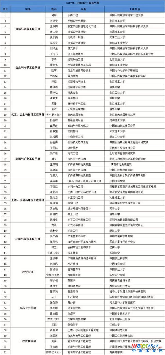 中國工程院2017年院士增選最終候選人名單出爐(江湖版)!