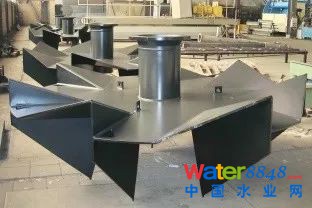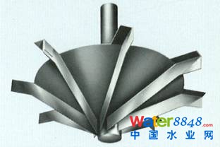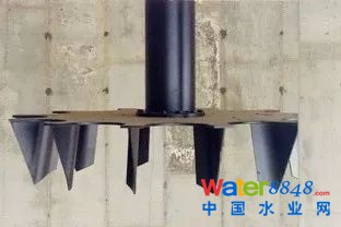 美國第一座雙葉輪卡魯塞爾氧化溝于1991年設(shè)計建成,雙葉輪結(jié)構(gòu)是在Hubert™ 葉輪的基礎(chǔ)上增加了低位攪拌推進葉輪,如下圖所示(原EIMCO公司樣本資料):