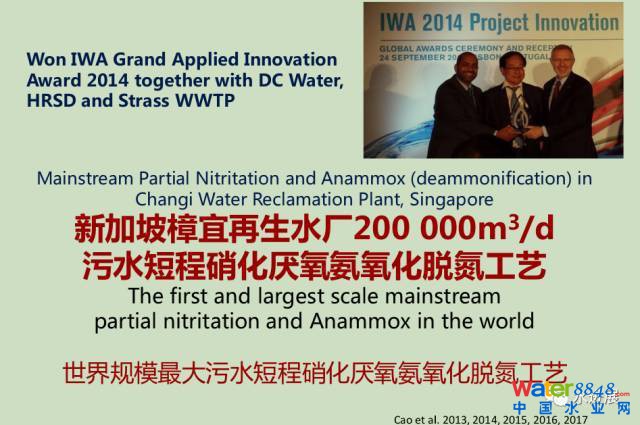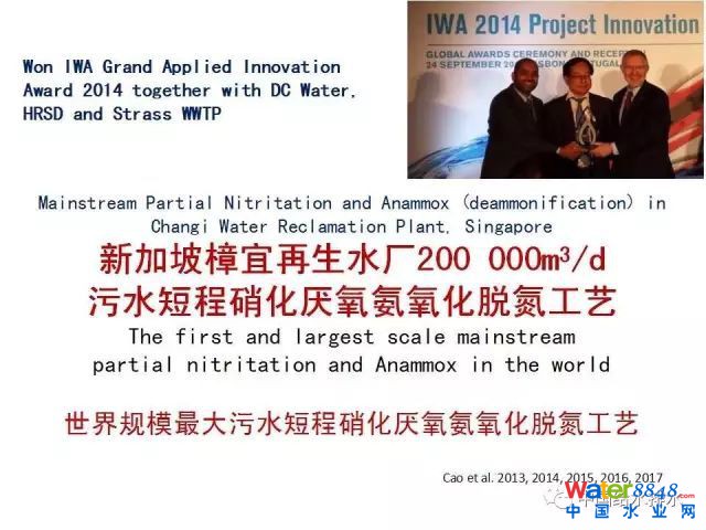 (詳見PPT)目前新加坡樟宜再生水廠,20萬噸的主流厭氧消化過程已經(jīng)報(bào)告了,是世界上最大的部分短程氨氧化和氨厭氧化過程,并且在2014年,我們跟美國的兩家水務(wù)系統(tǒng)和Strass廢水處理廠一起贏得了國際水協(xié)的發(fā)明大獎(jiǎng)。