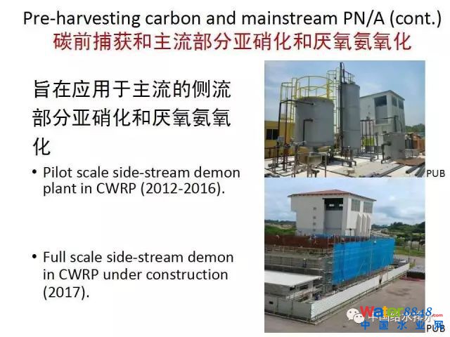 所以從2011年以來,新加坡PUB做了一系列的研發(fā)項(xiàng)目,三個(gè)中試的項(xiàng)目就著眼于回答這些問題。而最新的就是日處理1.2萬噸稱之為示范廠的項(xiàng)目,是模擬今后的第二階段的污水處理,看看主流厭氧氨氧化能不能實(shí)現(xiàn)。
