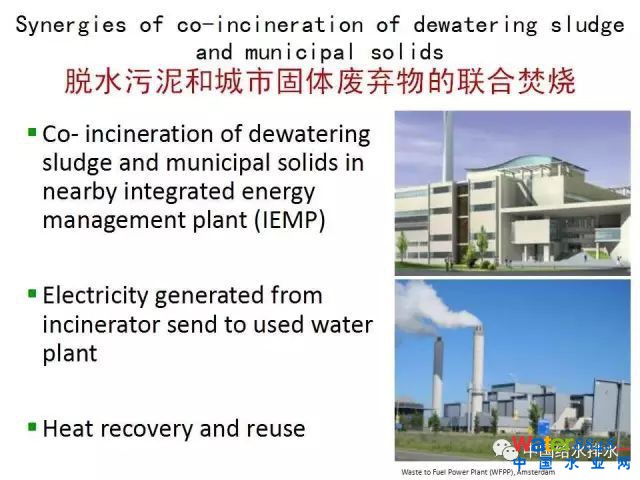 最后一個(gè)項(xiàng)目把新的污水廠里脫水的污泥就近送到旁邊的城市固體廢棄物處理廠,與城市固體一起焚燒,產(chǎn)生的電源送回到污水處理廠。