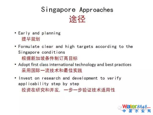 (詳見PPT)新加坡現(xiàn)有4個(gè)污水處理廠,總處理量是160萬噸。三個(gè)紅塊稱之為第二階段的污水處理廠。這兩個(gè)現(xiàn)有污水處理廠在新廠建成以后就要廢除了,到2025年新加坡會就有三個(gè)污水處理廠,總處理量到時(shí)候是240萬立方米/天。