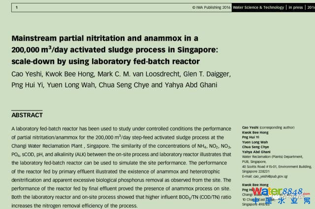 其實(shí),如果你跟蹤曹業(yè)始博士及其團(tuán)隊(duì)的研究,你會發(fā)現(xiàn),其在近幾年的國際會議或相關(guān)重要學(xué)術(shù)期刊發(fā)表的論文中,已經(jīng)從實(shí)際工程尺度運(yùn)行數(shù)據(jù)分析、30℃下Anammox理論動力學(xué)解析、和Anammox定量數(shù)據(jù)表征方面,已經(jīng)完全證明了樟宜再生水廠已經(jīng)在國際上率先實(shí)現(xiàn)了主流厭氧氨氧化。