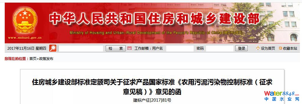 住房城鄉(xiāng)建設部標準定額司關于征求產(chǎn)品國家標準《農(nóng)用污泥污染物控制標準(征求意見稿)》意見的函