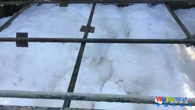 2,二沉池的氣泡是也是反硝化氣泡,這是二沉池水面有層油污狀的粘性物質(zhì),懷疑是細(xì)菌自身氧化釋放的質(zhì)輕不容解的脂類等物質(zhì),導(dǎo)致反硝化產(chǎn)生的小氣泡在水面掙脫不了,慢慢融合聚集形成的泡沫。還有一種是反硝化氣泡攜帶污泥,呈塊狀污泥上。ㄟ@個是污泥上浮問題,我們這里不分析)。A池出現(xiàn)反硝化上浮的情況一般發(fā)生在泥齡過長,污泥老化;負(fù)荷低,長時間處于內(nèi)源呼吸狀態(tài);還有攪拌機效率不高(攪動力度不夠?qū)е挛皆跉馀萆系奈勰嗖荒芗皶r脫離,上浮到水面),攪拌不均勻(部分污泥在池子堆積)的時候。