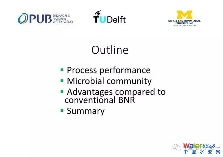 我今天主要介紹一個(gè)生產(chǎn)規(guī)模的主流厭氧氨氧化過(guò)程。這個(gè)項(xiàng)目跟美國(guó)DCWater HRSD和奧地利Strass廢水處理廠在同一主題項(xiàng)目下一起獲得了2014年度IWA應(yīng)用創(chuàng)新大獎(jiǎng)。是目前世界上最大也是第一個(gè)自身維持厭氧菌的過(guò)程。我介紹這個(gè)研究課題時(shí),同時(shí)也指出好處在哪里,省錢在什么地方。與常規(guī)生物過(guò)程出水水質(zhì)和曝氣能耗做比較。最后我想提出這一個(gè)技術(shù)在新加坡能夠應(yīng)用,很大程度上與它的氣候有關(guān),對(duì)中國(guó)來(lái)說(shuō),廣東和海南氣候是不是也考慮嘗試。