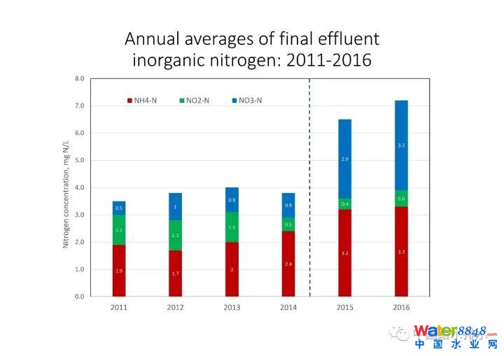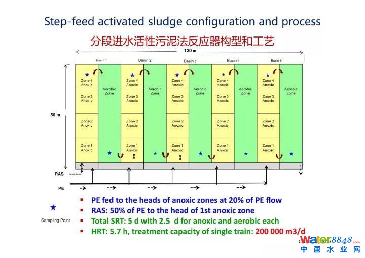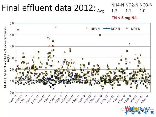 美國(guó)原來(lái)很多老廠 用兩點(diǎn)進(jìn)料工藝,再增加進(jìn)料點(diǎn)有顧慮,出水氨氮高達(dá)到5-6 mg/L。國(guó)內(nèi)考慮這個(gè)工藝考慮氨氮可能不能穩(wěn)定達(dá)到我們的要求。