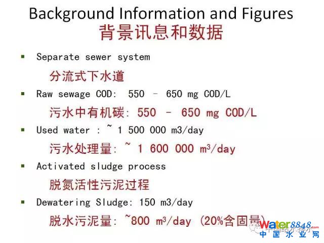 當(dāng)我們談污泥污水回收的時(shí)候要介紹一下背景,在新加坡污水處理是分流系統(tǒng),有機(jī)碳是550-650,新加坡華人占人口約75%,飲食習(xí)慣和大陸沒(méi)有區(qū)別。但是污水的COD的含量是在正常水平。污水處理量目前是160萬(wàn)噸,污水處理主要是應(yīng)用脫氮活性污泥工藝,污泥每天約800立方米,20%的含固量。