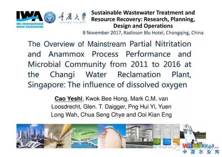 在2017年11月7—10日由國(guó)際水協(xié)(IWA)和重慶大學(xué)主辦的題為“可持續(xù)的廢水處理:研究、規(guī)劃、設(shè)計(jì)和運(yùn)行”(IWA-NRR-LWWTP 2017)國(guó)際會(huì)議上,來(lái)自荷蘭代爾夫特技術(shù)大學(xué)(TU Delft) 的Mark van Loosdrecht教授做了題為“新概念的廢水處理的創(chuàng)新與實(shí)踐(Innovations and Practical Experience of New Concepts in Wastewater Treatment)”的主題演講。他舉了2個(gè)已經(jīng)工業(yè)化應(yīng)用的實(shí)例。一個(gè)是新加坡樟宜污水廠的主流厭氧氨氧化,另一個(gè)是Nereda好氧顆粒污泥技術(shù)的應(yīng)用。新加坡公用事業(yè)局(PUB)曹業(yè)始博士在此次會(huì)議上,對(duì)樟宜污水廠2011—2016年主流短程硝化和厭氧氨氧化的運(yùn)行狀況及微生物研究情況做了總結(jié)報(bào)告。
