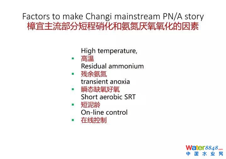 樟宜主流厭氧氨氧化的因素是什么?第一高溫。第二殘余氨氮的存在,缺氧好氧交換進(jìn)行,短泥齡和在線控制。