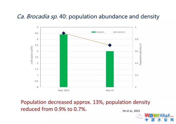兩家當(dāng)?shù)氐拇髮W(xué)進(jìn)行了微生物研究,證明這個(gè)系統(tǒng)當(dāng)中單細(xì)胞形態(tài)的氨厭氧化菌種存在。TU-Delt進(jìn)行了實(shí)驗(yàn)?zāi)M,證明了在樟宜條件下單細(xì)胞形態(tài)的氨氮厭氧菌確實(shí)可以存在。最近日本OKABE研究組也發(fā)現(xiàn)了類似的現(xiàn)象。