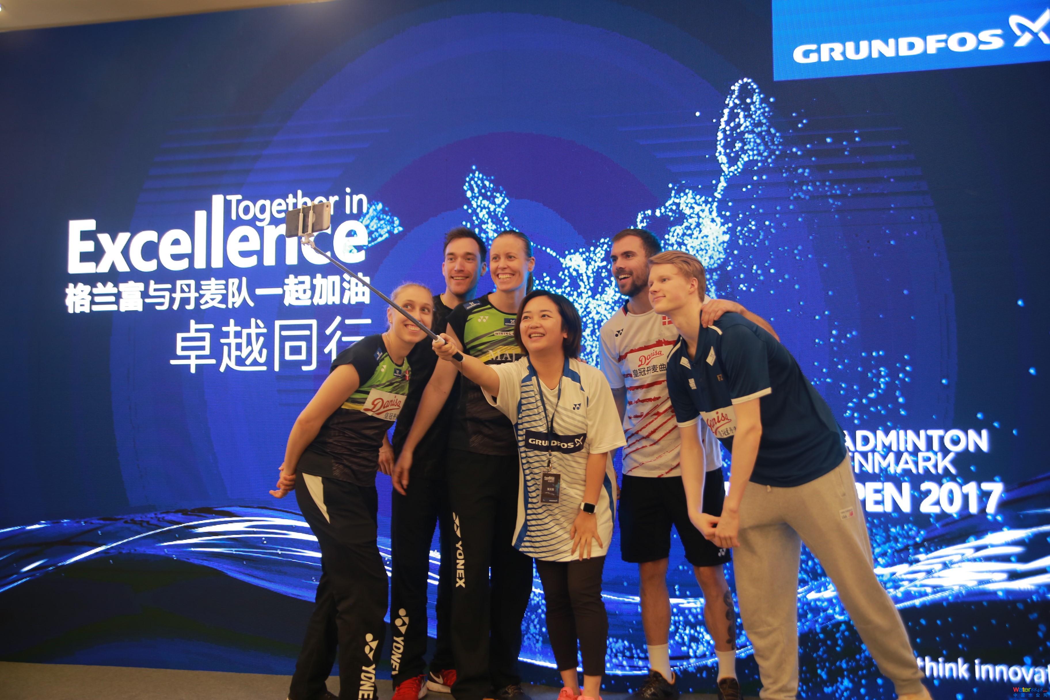 在之后的活動中,VIP客戶們獲得機(jī)會與格蘭富贊助的丹麥羽毛球國家隊(duì)球員進(jìn)行了了有趣的互動。這些格蘭富贊助的丹麥球員包括:安德斯·安東森(Anders Antonsen)、卡米拉·呂特·尤爾(Kamilla Rytter-Juhl)、克里斯汀娜·佩蒂森(Christinna Pedersen)、尼克拉斯·諾爾(Niclas Nøhr)和薩拉·蒂格森(Sara Thygesen)。大家可以隨意問問題,范圍不限。于是有客戶關(guān)心丹麥羽毛球的訓(xùn)練選拔機(jī)制,有的想知道他們對林丹、安塞龍等球員的看法,還有的問約根森身上的刺青又什么含義……之后又趕緊要了明星球員的簽名和合影,有的還一起玩起了自拍,不亦樂乎!