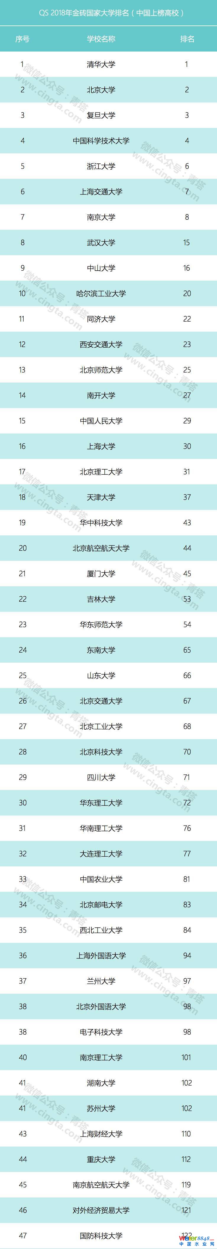 2017年11月22日,QS全球教育集團發(fā)布了QS 2018金磚國家大學(xué)排名,排名旨在深入分析世界新興經(jīng)濟體教育的全球競爭力,其中94所中國大學(xué)進入金磚國家前300名,而且前十名中有7所中國高校。
