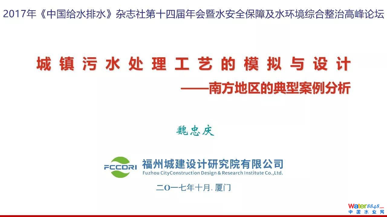 2017年10月《中國給水排水》雜志社第十四屆年會上福州城建設(shè)計研究院有限公司魏忠慶總經(jīng)理做了題為“城市污水處理工藝的設(shè)計與模擬——南方地區(qū)的典型案例分析”的報告。該報告以福建平潭污水處理廠為例,采用GPS-X(版本6.5.1)軟件,對該污水處理廠設(shè)計方案進(jìn)行了模擬優(yōu)化。通過模擬分析并結(jié)合國外項目案例,傳統(tǒng)設(shè)計方法和數(shù)學(xué)模型模擬相結(jié)合,有利于提高設(shè)計的精度與效率,基于傳統(tǒng)生化處理工藝的優(yōu)化可滿足高標(biāo)準(zhǔn)排放水質(zhì)的要求,為高標(biāo)準(zhǔn)污水處理的工藝設(shè)計提出了一種方案。